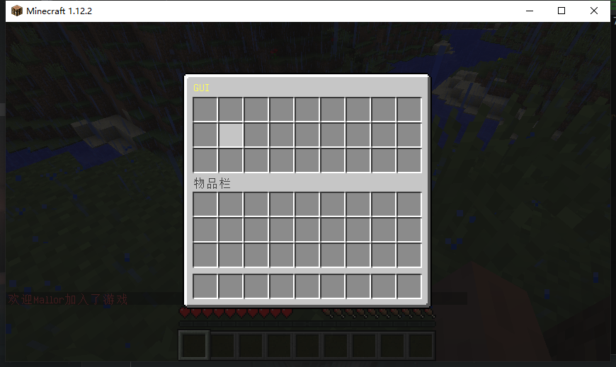 现在我们新建了GUI,可是他里面没有东西,而且这个东西玩家可以放入,不过放进去物品就没有了,相当于垃圾箱。所以我们需要放入东西, 我们在我们的GUI参数下输入代码