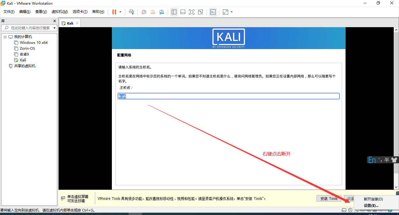 我们选择第一个—-图形化安装,选择语言和地区,安装时记得把网断了,不然后面会有些麻烦
